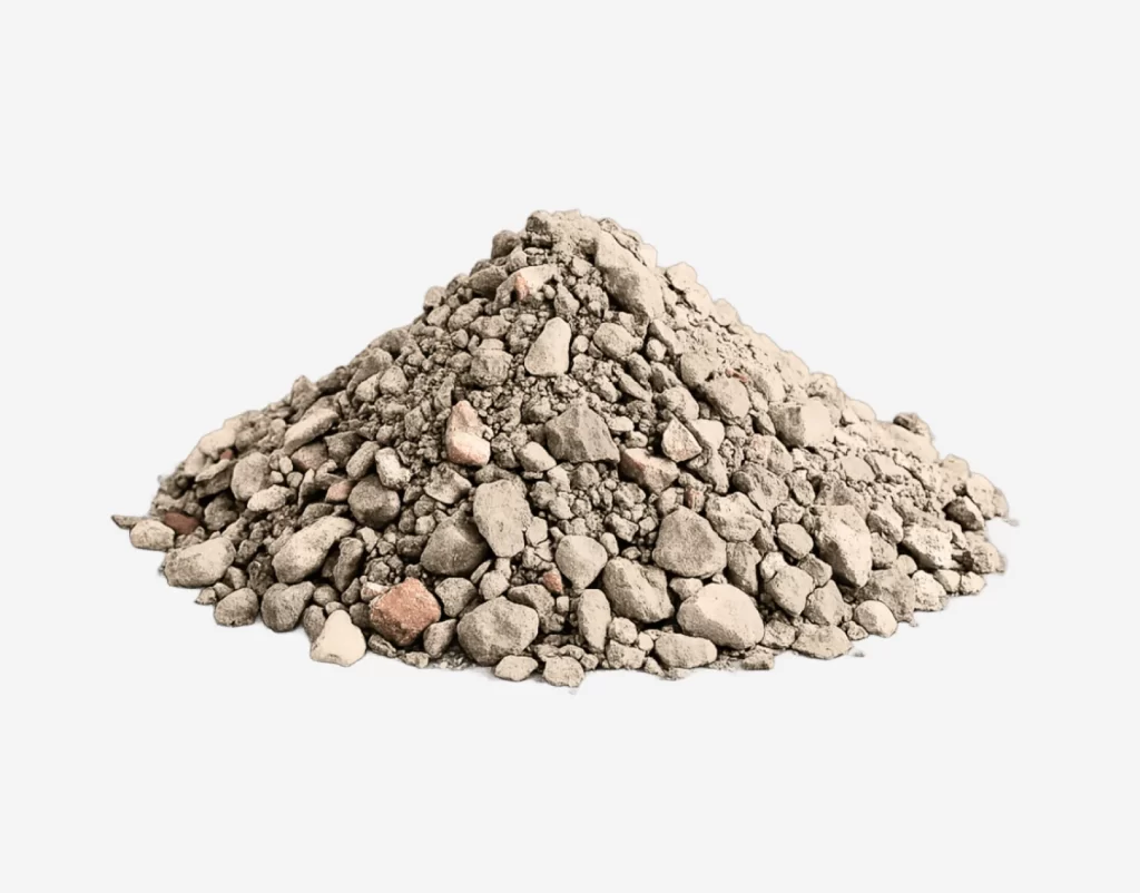 A recycled aggregate made from crushed concrete, bricks and mortar recovered from demolition sites. The particles range from roughly 75 mm down to fines and compact well to form a hardwearing subbase. It is ideal for road construction, foundations, piling mats and general backfilling.